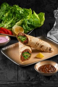 Yeşillik Özel Sos ve Lavaş Ekmek İle Servis Edilir